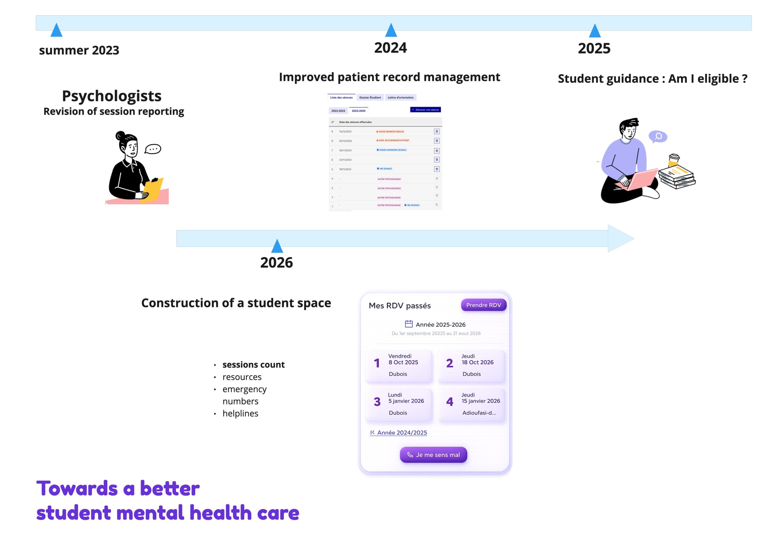 As the designer of the team, I am working on a billing tool between psychologists and universities. The comfort and ease of use for psychologists requires user research and iterations in developments, with a highly effective interdisciplinary team (development, communication, deployment) and the Ministry.